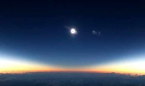 Американска авиокомпания промени разписанието си, за да могат пътниците да се насладят на пълното слънчево затъмнение във вторник от височина 10 670 метра над земята. Един от пасажерите от полет 870 на Alaska Airlines е успял да заснеме зрелищната гледка, която обяснява защо древните са изпитвали такова страхопочитание и ужас от астрономическото явление.