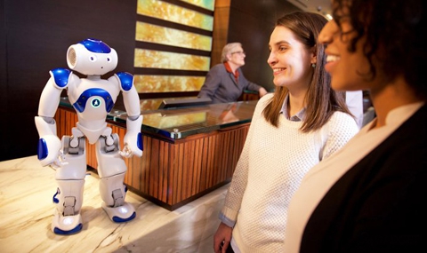 Гостите на хотел в Маклийн в американския щат Вирджиния вече ще бъдат посрещани от роботизиран рецепционист в рамките на пилотен проект на Hilton Worldwide и IBM. Хуманоидът Nao е произведен от френската компания Aldebaran.