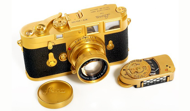 Сред останалите обявени за продан експонати изпъкват също единият от общо двата фабрично позлатени Leica M3 (прогнозна цена около $95 000) и репортерски Leica 250FF в безупречно състояние (очаквана стойност $26 000).
