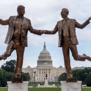 Рижия е толкова луд че постави негова статуя с педофила пред Белият дом.21:00 22.12.2025