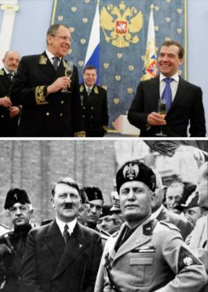 "Рашистан и Путлер влязоха в ролята на Хитлер и Мусолини"Обаче киевската хунта с пречупените кръстове изобщо не са в ролята на Хитлер и Мусолини. Той Бандера изобщо не е бил нацист.