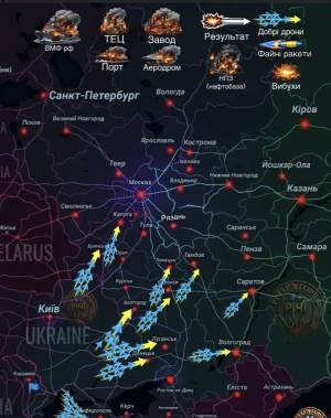 "Повредени са административни сгради, складове за селскостопанска продукция, автобуси и резервоари. В резултат на паднали отломки от дронове избухнаха пожари, които бяха потушени от спасителите", посочи Кипер.