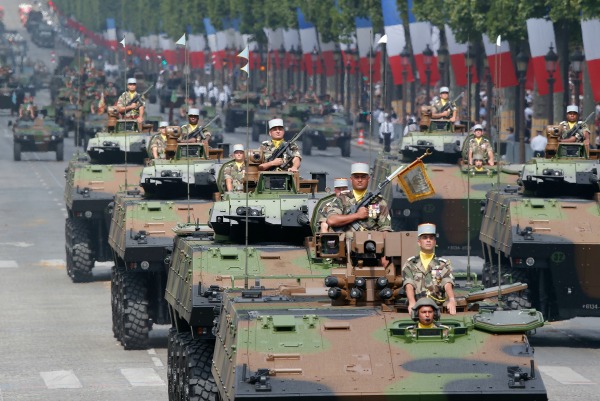 Кулминация в празненствата бе традиционният зрелищен военен парад по "Шанз-Елизе“, в който участваха 3500 души - военни, полицаи, жандармеристи и пожарникари, както и 55 самолета, 31 хеликоптера и 288 единици моторизирана техника, включително бронетранспортьори, специализирана техника на инженерните войски, пожарни автомобили и линейки.