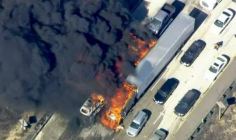 Бързо разрастващ се пожар остави в пламъци поне 20 превози средства на магистрала в южна Калифорния, съобщи Би Би Си. Има опожарени и 5 къщи.
