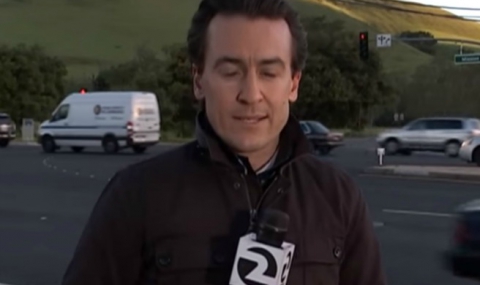 Репортерът на KTVU се отдръпна в последния момент и се размина само с уплах.
