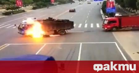 Той е бил настанен в болница, няма риск за живота му. Шофьорът на камиона пък разкри пред местните медии, че е излязъл от другата врата. Той също се е разминал без тежки наранявания или изгаряния.