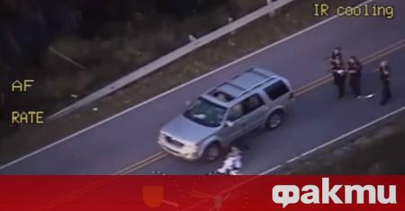 На кадрите се вижда как няколко полицейски служители са насочили пистолетите си към невъоръжения мъж, който е с вдигнати ръце.