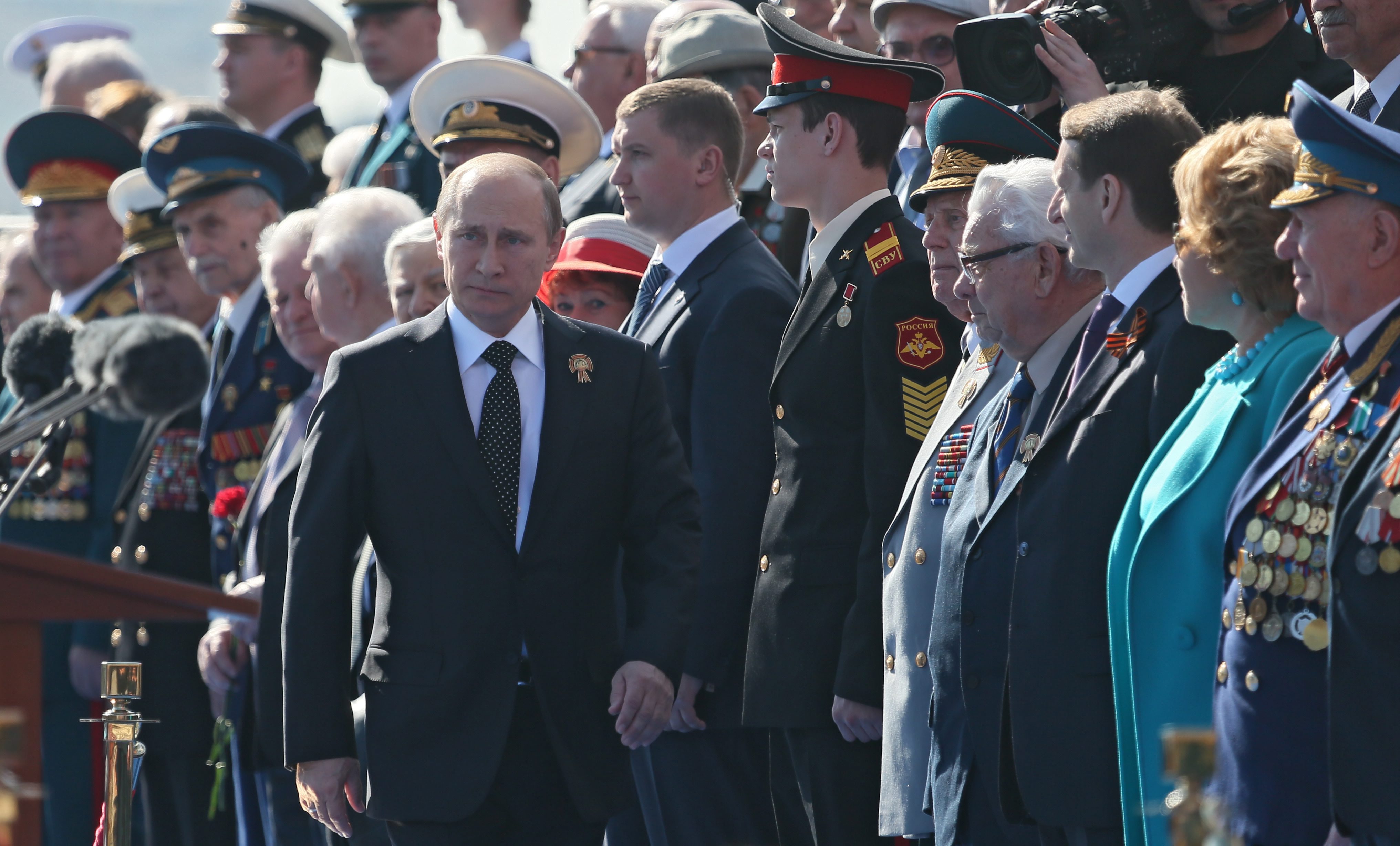 Малко по-късно държавният глава се обърна с реч към съотечествениците си, поздрави ветераните и обеща, че Русия няма да позволи на никого да предизвика нова световна война. Той изтъкна, че в Русия помнят „какво означава трагедията на войната“ и ще направят всичко подобна трагедия да не се повтори. „Нашият войник отстоя свободата и независимостта, защитавайки своята родина. Без да жали себе си, той освободи Европа и одържа победа, която навеки ще остане в историята“, подчерта президентът Путин.