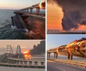Цистерна с гориво се е запалила на Кримския мост, съобщи руската агенция РИА Новости.