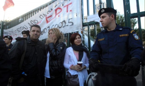 Държавната ERT беше закрита на 11 юни. Всичките нейни 2700 служители подлежаха на уволнение. Правителството оправда непопулярната стъпка с необходимостта за съкращаване на разходите в условията на криза. Освен това беше създадена малка държавна компания.