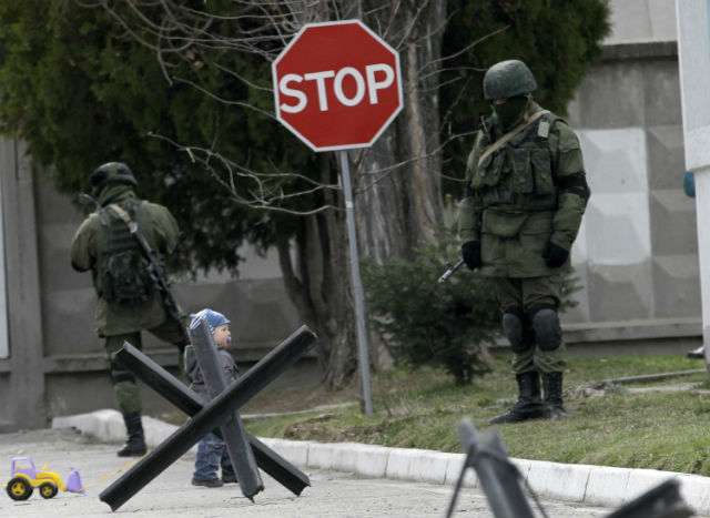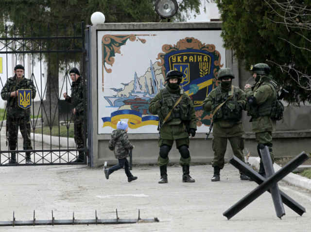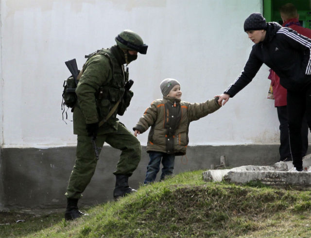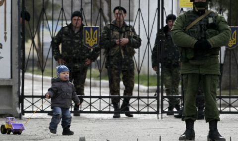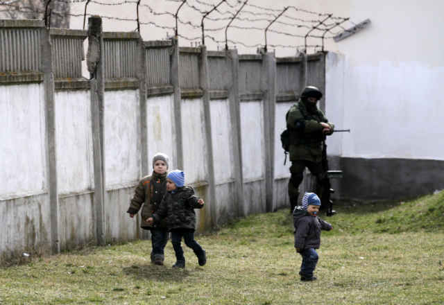 В часовете, в които световната общност продължава да търси политическо разрешение на кризата, деца продължават да си играят пред порталите на военните поделения.