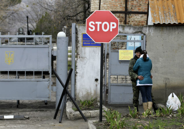 Часове след разполагането на руските войски в Крим и завземането на ключови военни обекти десетки жени на украински военни се събраха пред поделенията на военните поделения, където служат техните съпрузи.