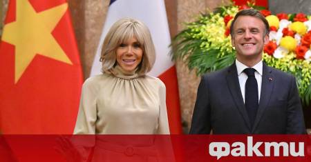 На заснето вчера видео от пристигането им във виетнамската столица се вижда как Брижит Макрон блъска съпруга си, преди двамата да слязат от президентския самолет. Френският президент отстъпва назад видимо стъписан, но бързо се съвзема и помахва на камерите долу на самолетната писта, които улавят сцената.