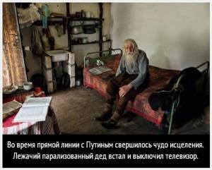 По време на пряката линия с Путин, се случи чудо на изцелението- лежащ, парализиран дядо, стана и изключи телевизора."